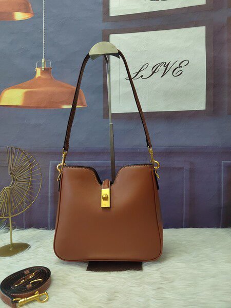 Celine Bags 200 Model No. 120693 Brown Leather Handbag, Handheld, Shoulder and Crossbody, Rotating Lock Closure.Size: 24.5cm-21.5cm-5cm