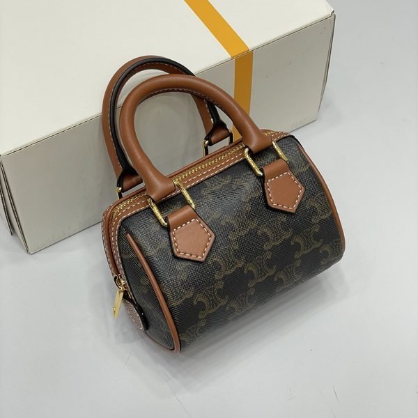 Celine Bags 205, CE. Upgraded Version MINI Boston Bag TRIOMPHE CANVAS Logo Print, Cow Leather Edging, Fabric Lining, Closure, 1 Main Compartment, Interior Zipper Pocket Size: 14×9.5×7.5cm
