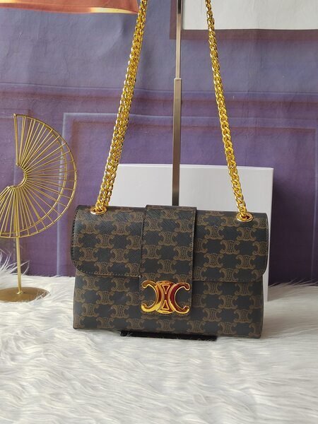 Celine Bags 210 Style No. 115853 Old Flower Color Crossbody and Shoulder Medium Cow Leather Handbag, gold Finish, Two Compartments, Central Zipper Pocket, Size: 25cm-15cm-8cm