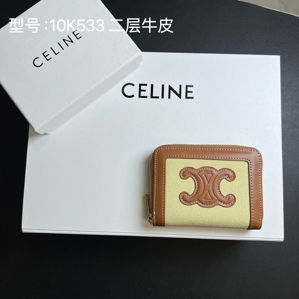 Celine Bags 75 Upgraded Original Version❤ TRIOMPHE CUIR Split Leather Celine new shiny cow leather❤ Compact Wallet Material and Natural/Tan Textile Material, Trim Calfskin Lining Zipper Closure Six Credit Card Slots Two Gussets CompartmentsSize: 10.5 9 X 1 Style number: 10K533DR8 10533 / 10L742
