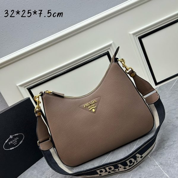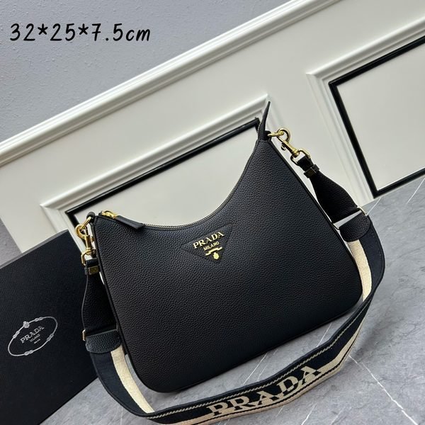 Prada Bags 490 New Large Single Shoulder Bag 1BC178 has arrived. The bag body is made of imported deerskin patterned cowhide, with a LOGO woven long shoulder strap design. Fabric ribbon cowhide combination, full sheepskin inner zipper bag, perfect for different occasions outfits, versatile mix match, large capacity space, super soft feel, hurry up and get it. Dimensions: Length 32x Height 25.5x Bottom 7.5cm