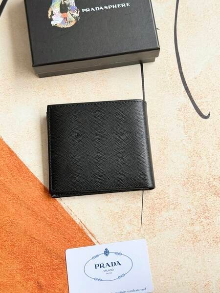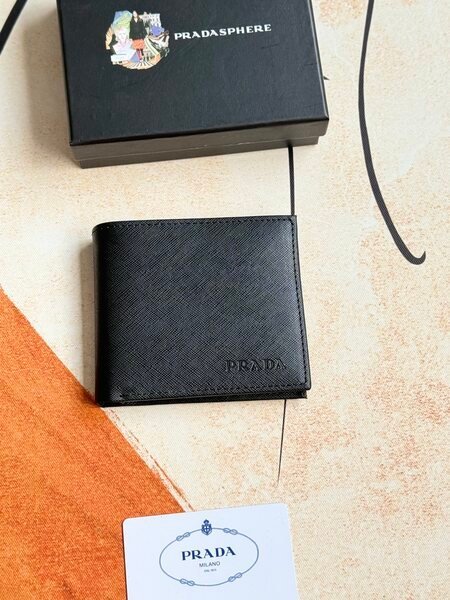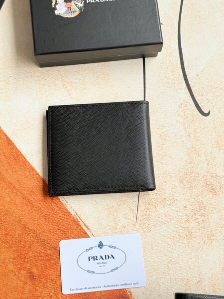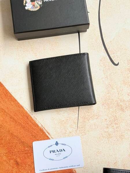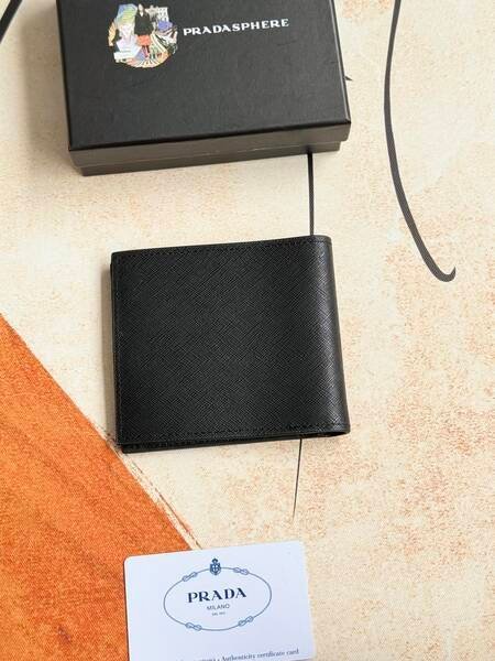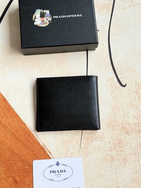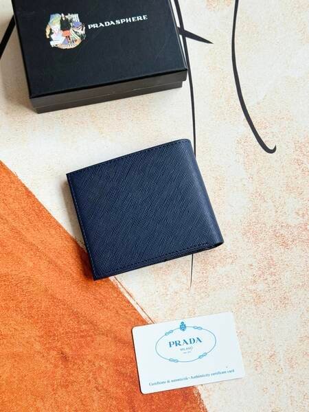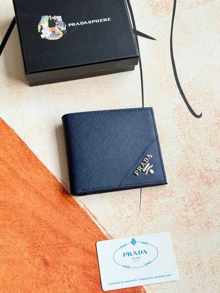 Prada Bags 75PRADA Men’s Short Wallet Counter Latest Style, Official Website Synchronization, Genuine Development, Model 2M0513 # Color as shown, blue. The blue leather texture is excellent, with threaded lining. Imported white steel hardware accessories feature a complex color-blocking design, making it more fashionable and unique. Dimensions: Length 11cm, Height 9cm