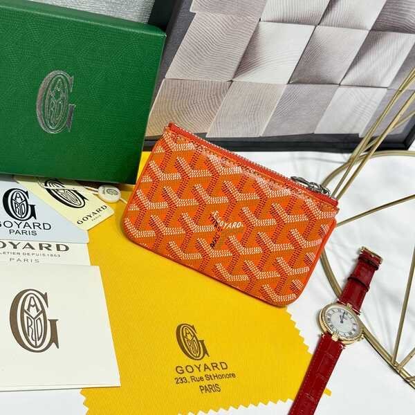 Goyard Bags 70 Goya Sénat Nano Key Case features an internal D-ring zipper closure system secure key storage.Its size is very practical and ideal for storing cards, small change, or badges. Style number: 98991 Color: Orange Size: 13cm 1cm x 9cm