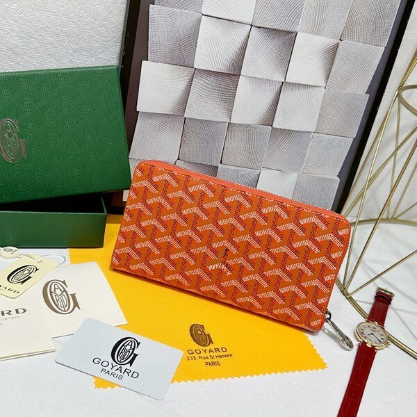 Goyard Bags 90 Goya Matignon Large Wallet is designed as long style with full closure security.It contains 12 card slots, a central zipper pocket, two large storage compartments for cards, banknotes, coins, and other daily documents. Style number: 98188 Color: Orange Size: 20cm 2.3cm x 11cm