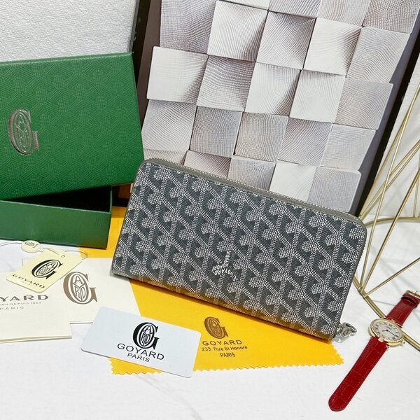 Goyard Bags 90 Goya Matignon Large Wallet is designed as long style with full closure security.It contains 12 card slots, a central zipper pocket, two large storage compartments for cards, banknotes, coins, and other daily documents. Style number: 98188 Color: Gray Size: 20cm 2.3cm x 11cm
