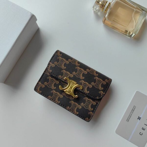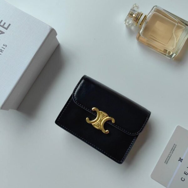 ????75 Celine New Card Holder, TRIOMPHE Business Card Holder, Classic Pattern Large Surface with Smooth Microfiber Interior, gold Trim with TRIOMPHE Metal Snap Closure, 1 Thickened Main Compartment, 3 Interior Card Slots