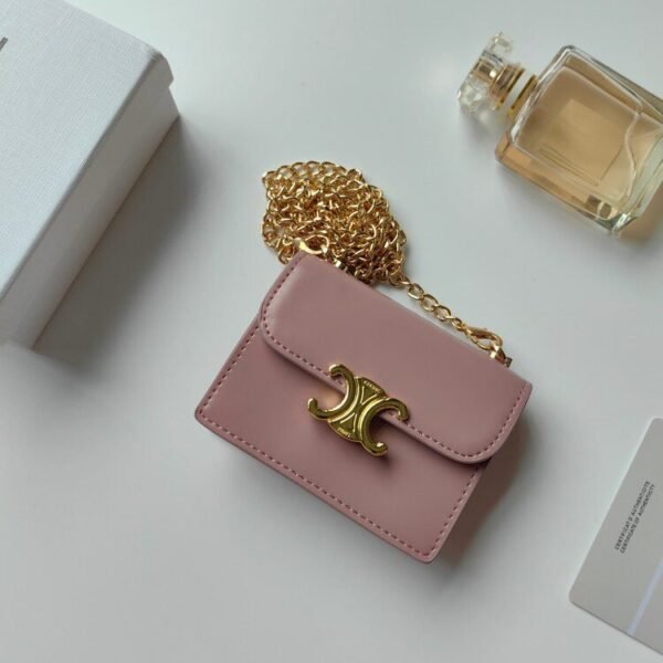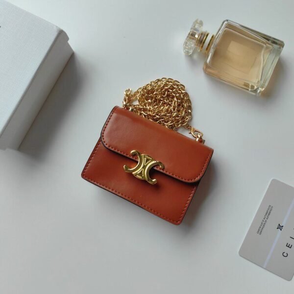 ???? 80 Celine New Chain TRIOMPHE Business Card Bag, Crossbody, Classic Pattern Large Interior with Smooth Microfiber, gold Finish TRIOMPHE Metal Snap Closure, 1 Thickened Main Compartment, 3 Interior Card Slots