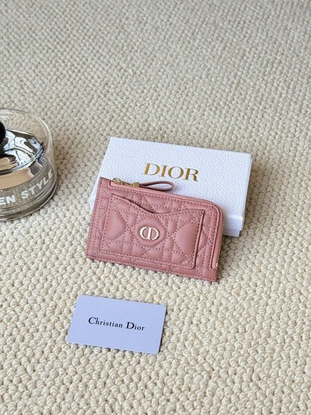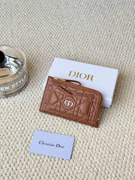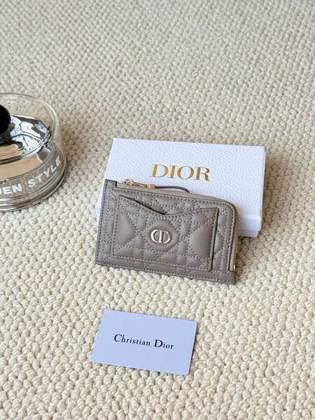 ????80Lady Dior Card Holder Sand Color Bought for Carrying Waste Bag Wallet, L-shaped Opening