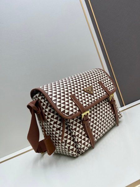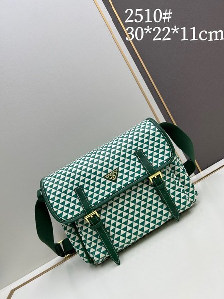 Prada Bags Batch 300 Box Latest Fabric/Symbole Messenger Bag❗|||Made Printing nylon fabric cross-grain cowhide.The is eye-catching striking; print on the consists of classic triangles, very appealing to look at, and it has ample space. This stylish can be worn bag, recommended as crossbody or shoulder with color matching, a favorite bag for going out, Parda new product launched#Unisex#Dimensions 30x22x11, model 2510