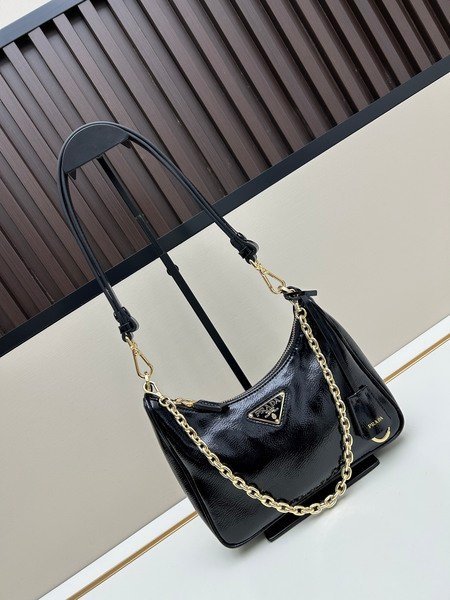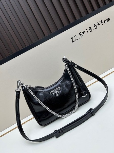 Prada Bags Batch 310 Lacquered Cowhide with Box Re-Edition NaplaK Prada Women’s Shoulder or Crossbody Bag Size 22.5X18.5X7CM A bag that recreates the style grids 2005. Prada’s design codes are condensed into versatile silhouettes, creating a dialogue between past present styles. Adjustable shoulder strap, parts, detachable key ring, exquisite simple leather item. The triangular logo of enamel metal exudes an iconic and charming design.