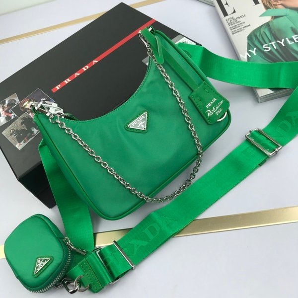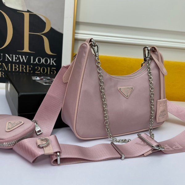 P360 [Top Original Order] Comes with Exclusive Box ???? Prada New Nylon Hobo Handbag/Underarm Bag ???? ???? The hobo bag, popularized by internet celebrity sister groups in the fashion circle, has released a new model! ???? ???? The design of this Hobo bag is fantastic ???? ???? Three uses in one pack ???? ???? Waist Bag/Crossbody/Single Shoulder ???? ???? Replaced the handle with a chain, adding a touch of sexiness as an underarm bag, also paired with a long shoulder strap. What I love most is that the strap has a small pendant (small bag), which can also be used to hang other bags or pants as an accessory ???? ???? No problem matching with various outfits ???? ???? Babies, hurry up and get it, it’s so beautiful! ???? ???? Model: 1BH204, Dimensions: Length 22X Height 12x Base 6cm