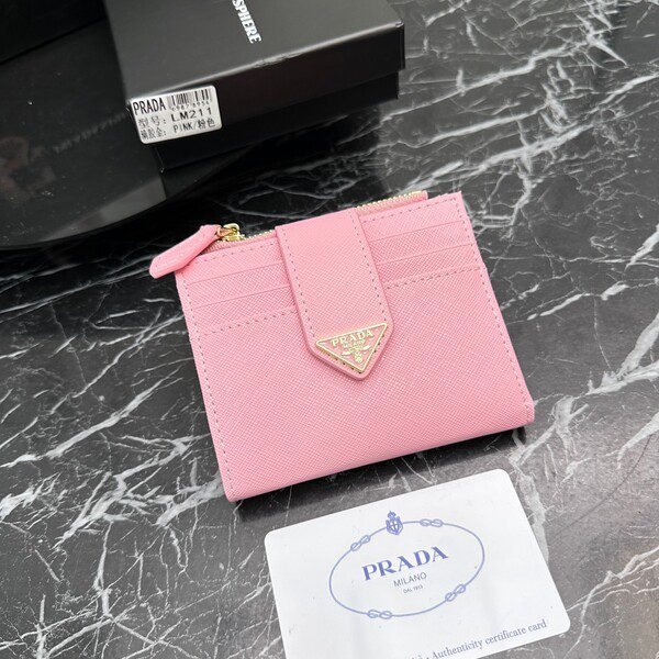 Prada Bags P90 PRADA Official Synchronized New Shipment, Short Clip Hot Item Shipment: ✌ Product Cabinet Special Real Shot [Strong]! Size: Quality Leather: Original Character Ten Pattern Color: Epoxy Gold Triangle Logo Plum Bright Red, Pink, Black, Apricot, Sky Blue, Purple Size 10X9Ⅹ2, Model LM209
