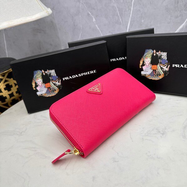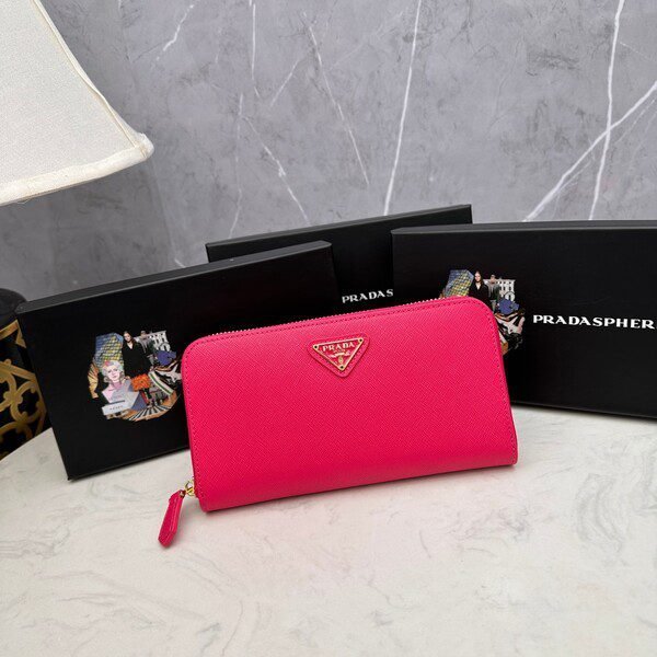 Prada Bags P95 PRADA, Small Zipper Wallet Classic Work, Simple Fashion, Italian Top Grade Original Single Cross Grain Cowhide Leather with Excellent Texture, Imported Threaded Lining, White Steel Metal Hardware Accessories! and Even Stitching, Exquisite Workmanship, Size: 19x10x2.5, Color: Triangle Label Plum Bright Red, Blue, Black, Pink, Number: ML201