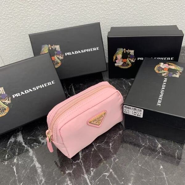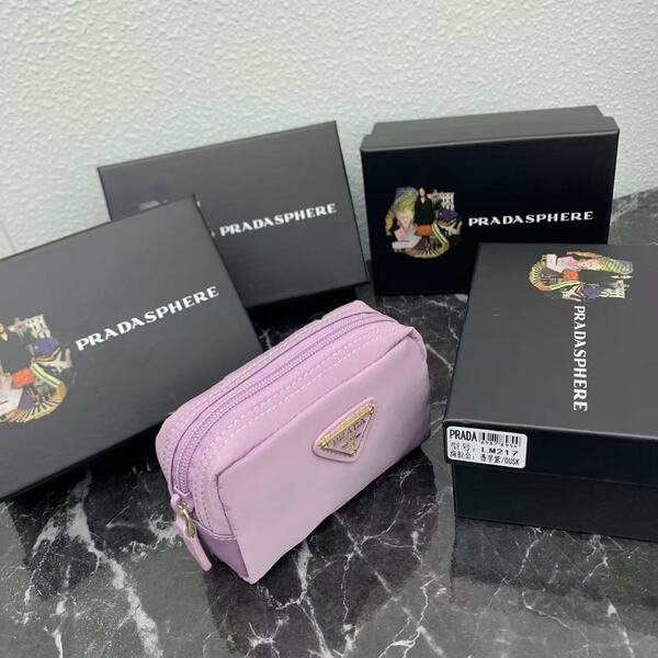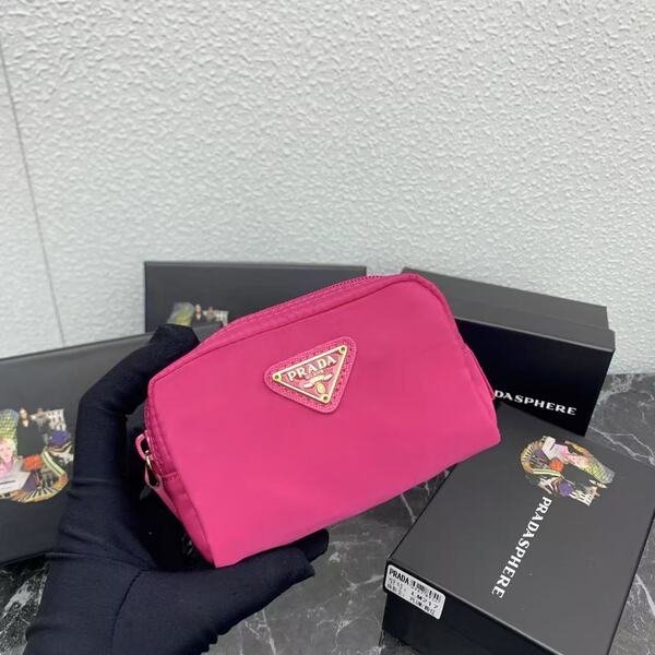Prada Bags PRADA Official Synchronized New Arrival, Enamel Triangle Metal Logo Zipper Closure Nylon Cosmetic Bag Regular Women’s Style✌✌✌ Product Cabinet Special Real Shot [Strong]! Size: Quality Leather: Original Color: Gold Black Silver Buckle, Plum Red, Pink, Sky Blue, Apricot, Green, Lavender Purple, Size 12㎝*3.5㎝*8㎝, model LM217