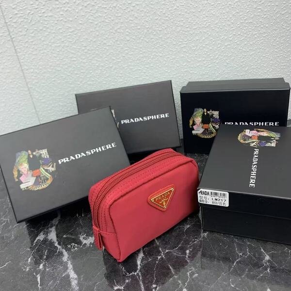 PRADA Official Synchronized New Arrival, Enamel Triangle Metal Logo Zipper Closure Nylon Cosmetic Bag Regular Women’s Style ✌ ✌ ✌ Product Cabinet Special Quality Real Shot [Strong]! Size: Original Quality Leather: Original Color: Black Gold Buckle, Black Silver Buckle, Red, Plum Red, Pink, Sky Blue, Apricot, Green, Lavender Purple, Size 12 ㎝ *3.5 ㎝ *8 ㎝ , model LM217
