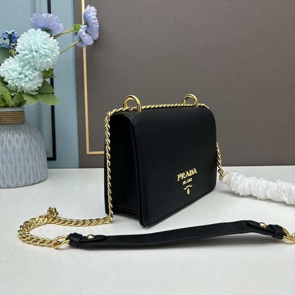 350 Top Original Version! P Brand????Counter????The latest hot item 1BD133# has arrived????Original quality, trendy design, chain shoulder strap, imported Napa leather + imported cross-grain leather lining with lambskin, simplicity is beauty????Unique Fashion????????????Goddess Bibe, code for supply 165????Dimensions: 20x7x14.5 cm.