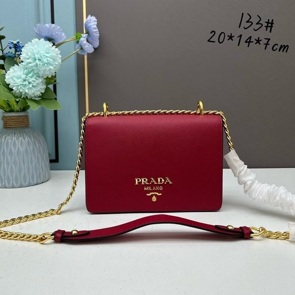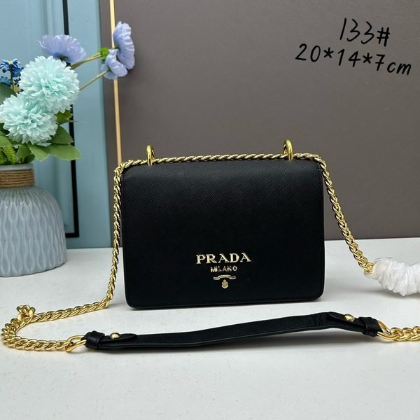 Prada Bags 350 Top Version! P Brand Exclusive Latest Hot Item 1BD133# Arrival Original Quality, Trendy Design, Chain Shoulder Strap, Nappa + Imported Cross Grain Leather Lined with Lambskin, Simplicity is Beauty, Unique Fashion Goddess Must-Have, Size 165, Dimensions: 20x7x14.5cm