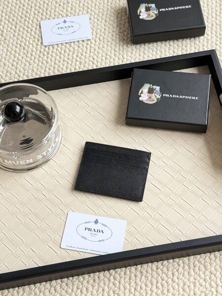 Prada Bags 55prada Hot-Selling Holder Unisex Small Holder, Black, Model 1MC025 Diagonal Triangle Cross Pattern Cowhide Leather, 6 Card Slots ➕ A middle compartment that can hold multiple cards and small change, size 11.2×8.5cm, actual product photo, see is what you get
