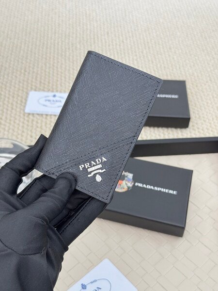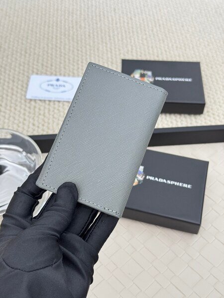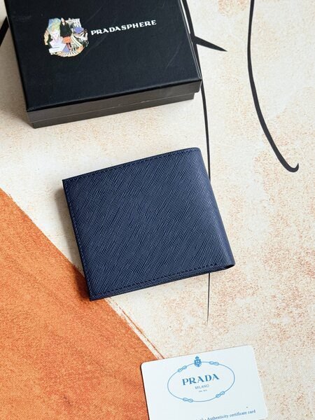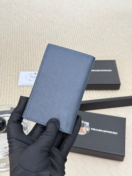 Prada Bags 75PRADA Men’s Short Wallet Counter Latest Style, Official Website Synchronization, Genuine Development, Model 2M0513 # Color as shown, blue. The blue leather texture is excellent, with threaded lining. Imported white steel hardware accessories feature a complex color-blocking design, making it more fashionable and unique. Dimensions: Length 11cm, Height 9cm