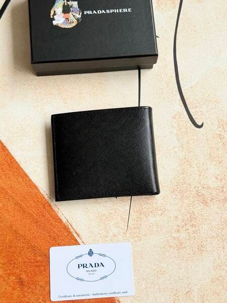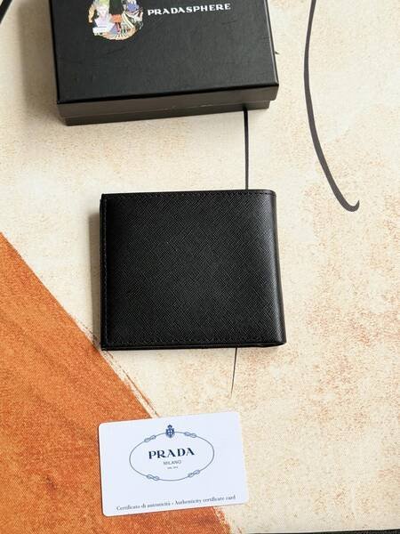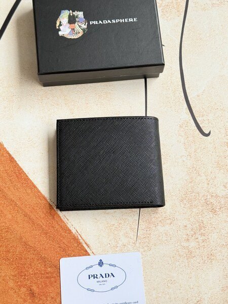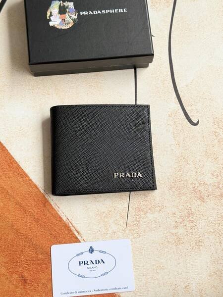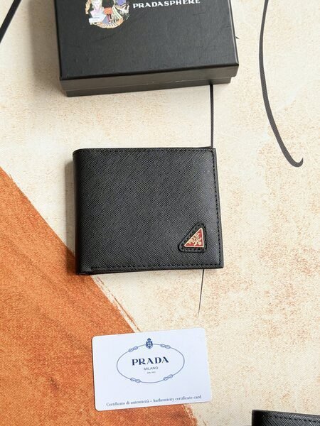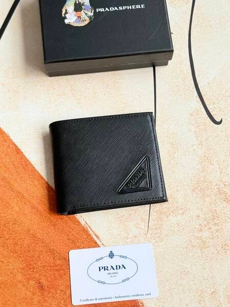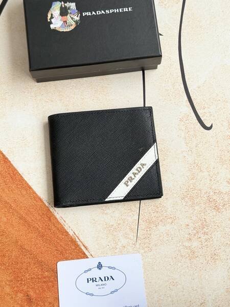 Prada Bags 75PRADA Men’s Short Wallet Counter Latest Style, Official Website Synchronization, Genuine Development, Model 2M0513 # Color as shown, blue. The blue leather texture is excellent, with threaded lining. Imported white steel hardware accessories feature a complex color-blocking design, making it more fashionable and unique. Dimensions: Length 11cm, Height 9cm