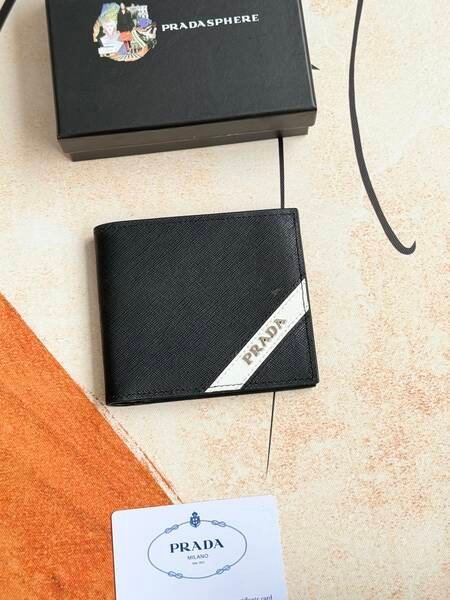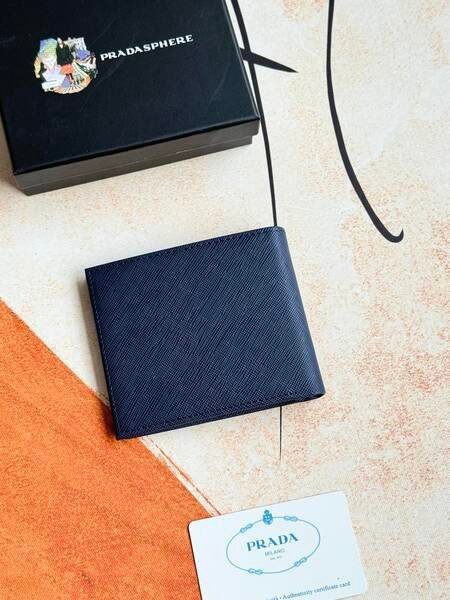Prada Bags 75PRADA Men’s Short Wallet Counter Latest Style, Official Website Synchronization, Genuine Development, Model 2M0513# Color as shown, blue. The blue leather texture is excellent, with threaded lining. Imported white steel hardware accessories feature a complex color-blocking design, making it more fashionable and unique. Dimensions: Length 11cm, Height 9cm