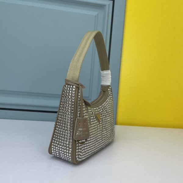 Prada Bags 270 2021 New Sparkling Rhinestone Hobo Bag Box Wow! entire inlaid rhinestones. The rhinestones are dazzling under the light! beautiful. Trust me, carrying it out at night is very eye-catching has a high rate of turning heads. People will compliment wherever you go. This sparkling rhinestone bag also pairs well outfits, it’s so fairy-like and cool, suitable any occasion, especially for attending Prada events paired with dresses. It’s absolutely stunning! Size 22cm, model number 2260