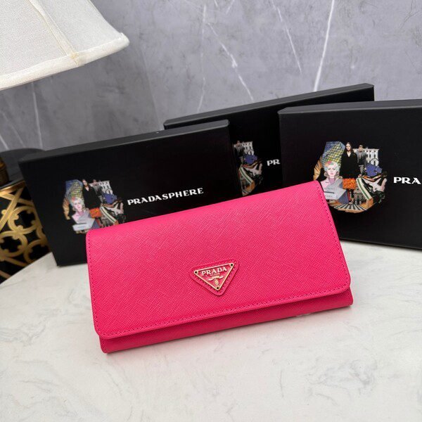 Prada Bags P95 PRADA, Style Flap Wallet Two-Way Classic Design, Simple Fashionable, Italian Top-Grade Original Grain Cowhide Leather with Excellent Texture, Imported Threaded Lining, White Steel Metal Hardware Accessories! and Uniform Stitching, Exquisite Workmanship, Size: 19x10x2.5, Color: Epoxy Triangle Label Plum Bright Red, Blue, Black, Pink, Number: ML202