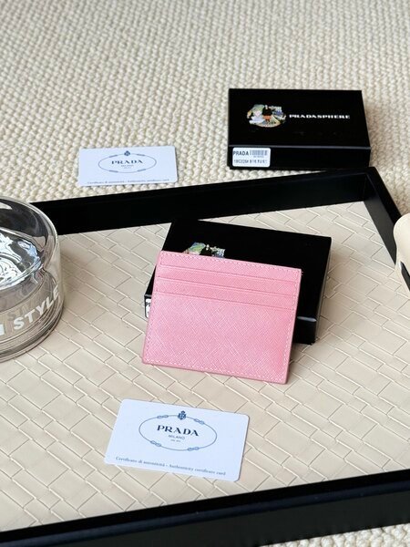 Prada Hot-Selling Card Holder Unisex Small Card Holder, Black, Model 1MC025, Loose Characters, Triangle Wheat Series, Nine Colors