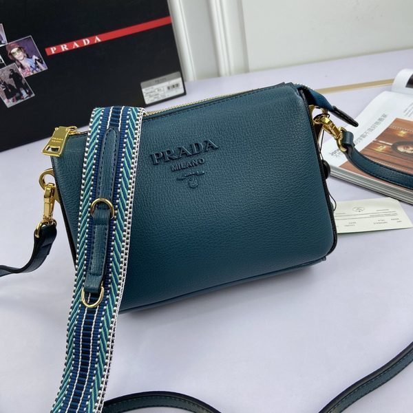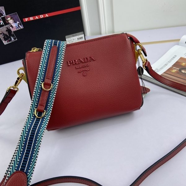 Prada Bags 280 Prada Flap Crossbody Model 66136, Equipped with Two Straps, 2019 Summer New Fashion Women’s Single Bag, Striped Shoulder Strap Genuine Leather Handbag, 3 Compartments [Strong] Size 21-15-9cm