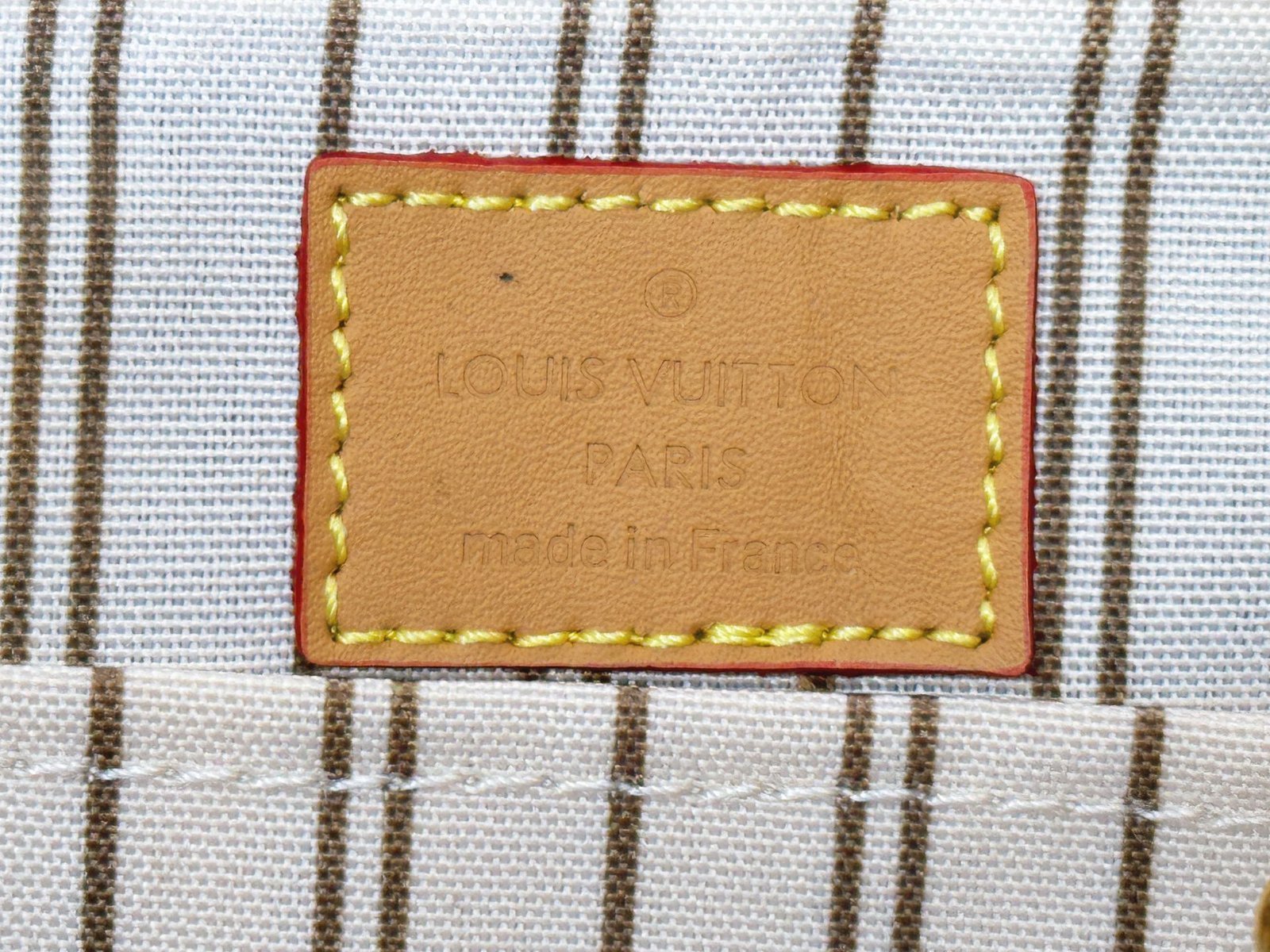 The detachable and adjustable wide fabric shoulder strap features Louis Vuitton logo weave, and the rolled leather handle adds another way to carry it.