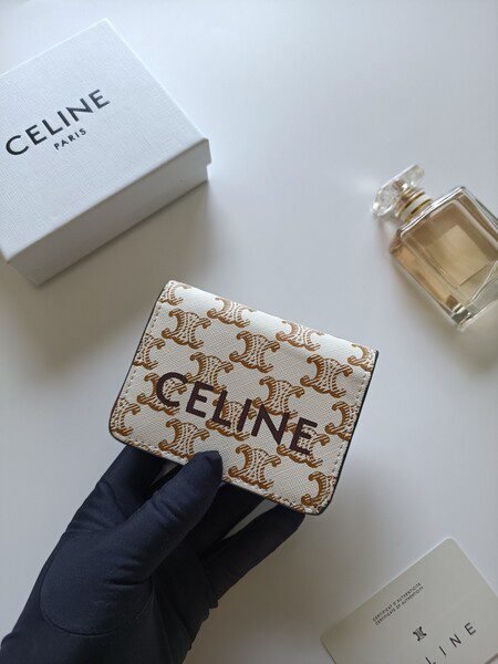 Celine Bags ¥75 Celine Classic Business Holder, Large Cowhide Interior with Smooth Microfiber CANVAS Logo Print, gold Trim TRIOMPHE Metal Snap Closure, Zipper Coin 5 Card Slots, Banknote Pocket, 1 Flat Pocket No.: 10K623 Size:11 9 X 3cm