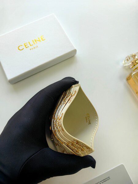 Celine Bags 50 CELINE New Embossed Logo Holder, Made of Top Layer Cowhide, Two Card Slots + One Middle Insert Pocket, Style No.: 10L833, Size: 10.5×7cm
