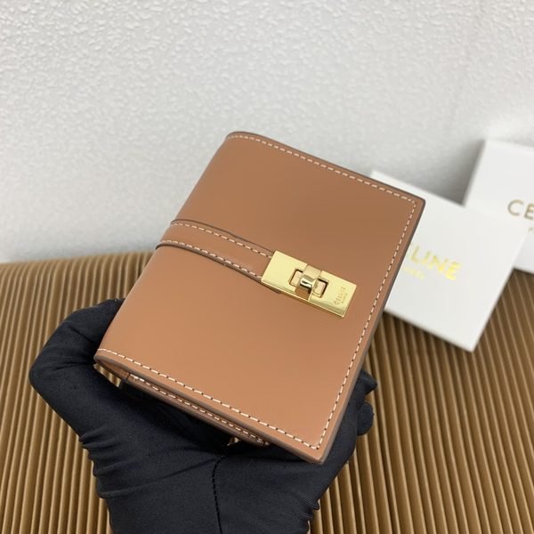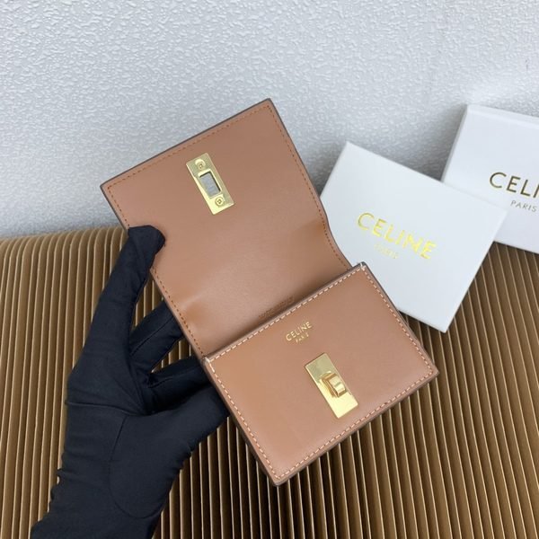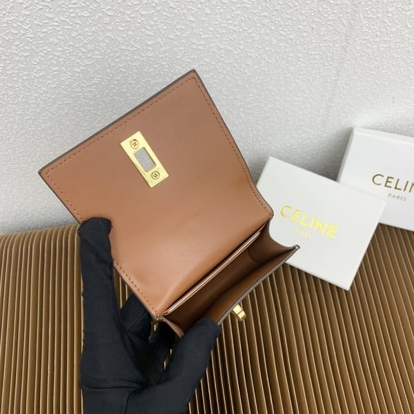 Celine Bags TRIOMPHE16 Glossy Flip Holder Cow Leather Lining Rotating Lock Closure Main Compartment 2 Inner Card Slots Size: 4 3 1 inches 10 7.6 X 2cm Number: 10473