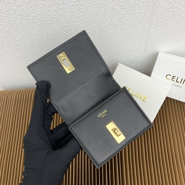 Celine Bags TRIOMPHE16 Glossy Flip Holder Cow Leather Lining Rotating Lock Closure Main Compartment 2 Inner Card Slots Size: 4 3 1 inches 10 7.6 X 2cm Number: 10473