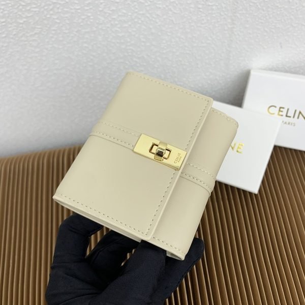 Celine Bags TRIOMPHE16 Small Glossy 70% off Wallet Leather Lining: Cow Leather/Fabric gold Finish Rotating Lock Closure Snap Button Foldable Coin 5 Card Slots 1 Banknote Pocket Flat Pockets Size: 4 2 inches 10.5 9.5 X 4cm Number: 10523