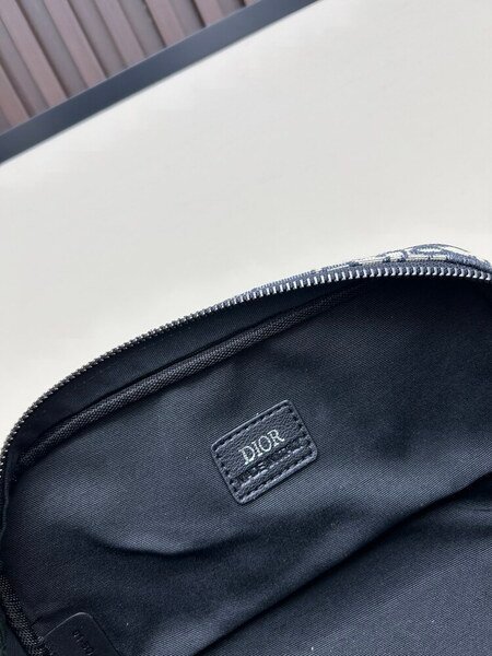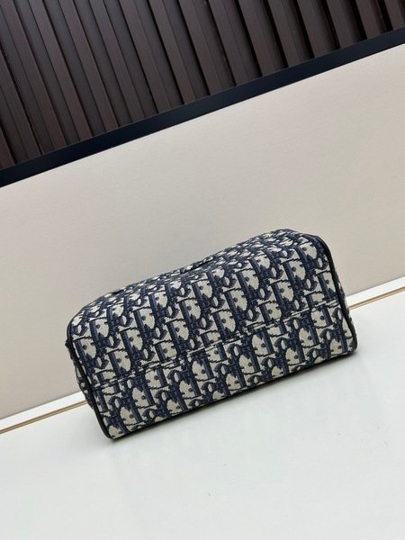 Front decorated with metal-coated brass Dior logo, inside decorated with Dior embossed logo, double zipper closure, dimensions: 25*15*13.