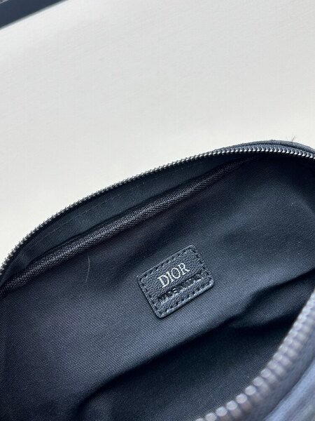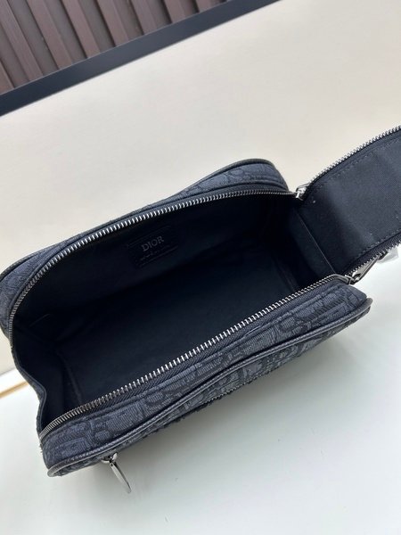 Front decorated with metal-coated brass Dior logo, inside decorated with Dior embossed logo, double zipper closure, dimensions: 25*15*13.