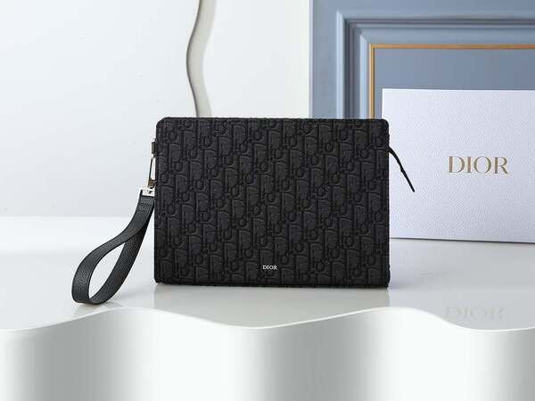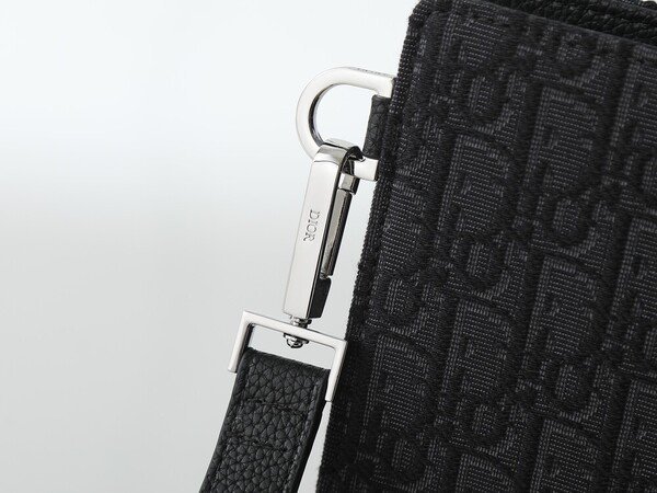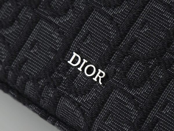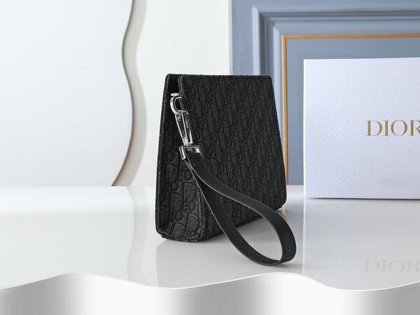 ????170 model number 483 black printed fabric, front decorated with Dior logo to enhance style, features a large zippered compartment for storing a phone, six card slots, paired with a detachable nylon jacquard wrist strap, can be carried by hand or placed in a handbag.