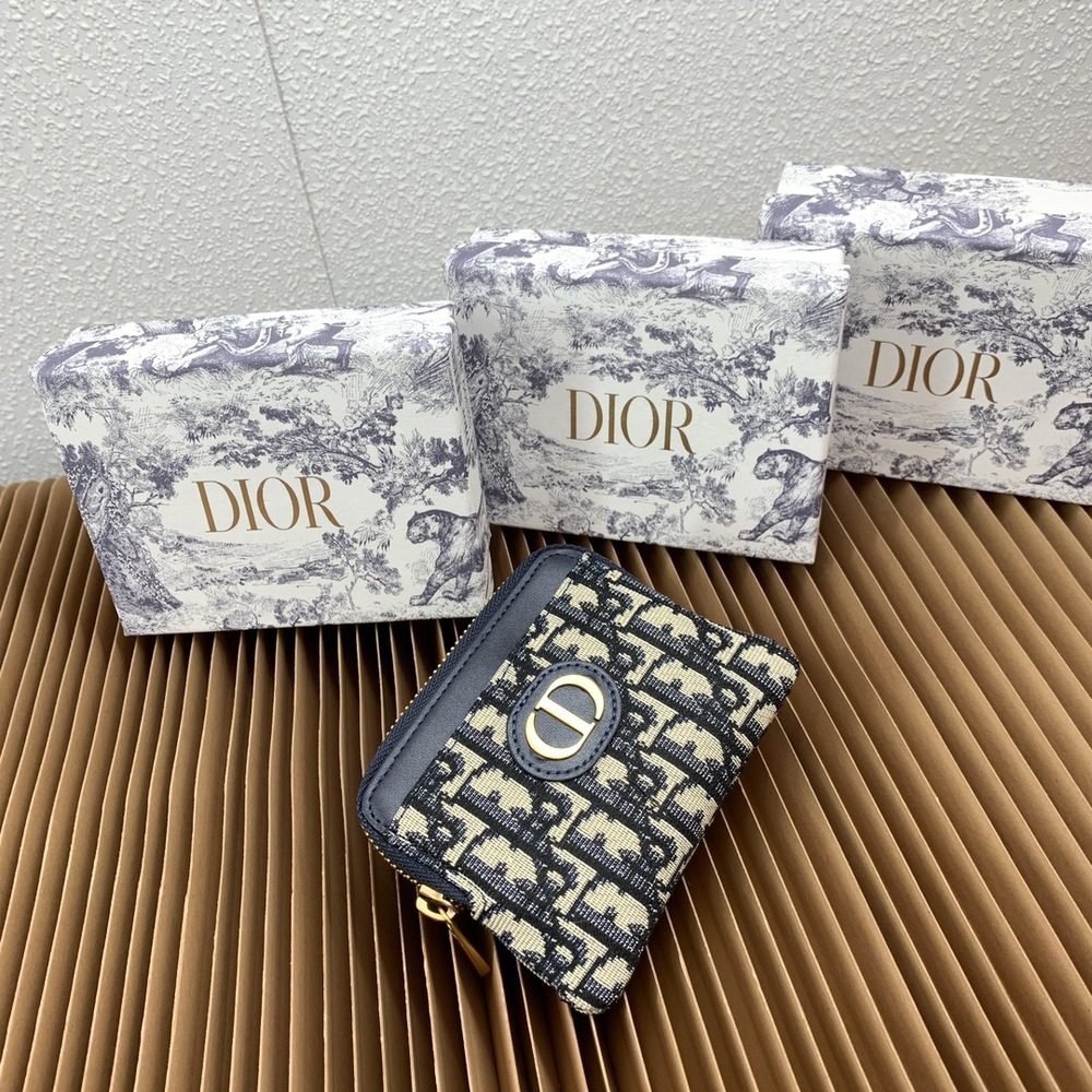 This 30 Montaigne Lavender wallet has a very practical design, made of blue Dior Oblique sequins with a CD logo on the front.