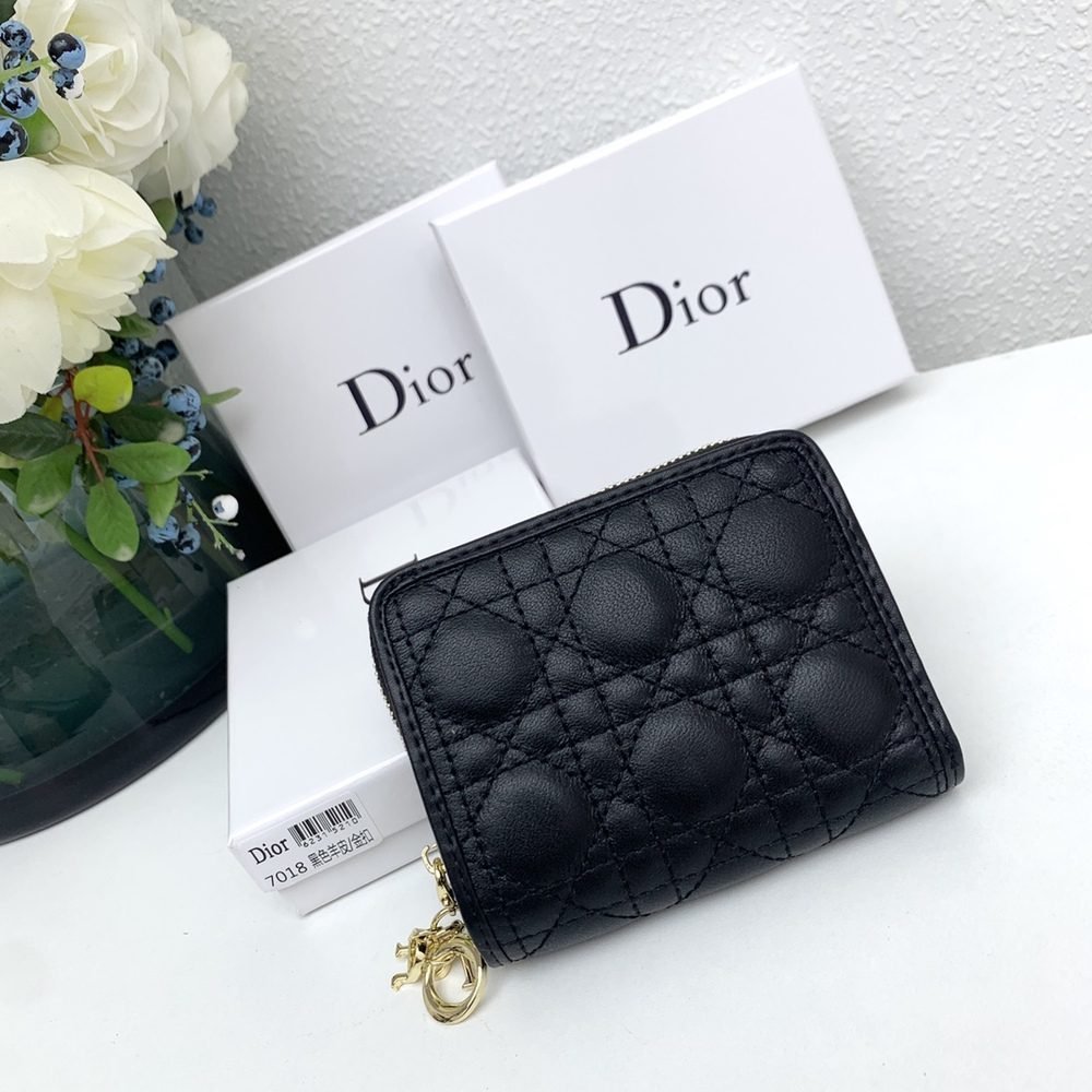 [Original Leather] [Heart] Dior Short Round Zipper Wallet???? Adopted the latest style, paired with a central gold-tone metal Dior logo✅ There are 4 card slots on the side when opened, and 1 coin pocket????????Style number: 7018