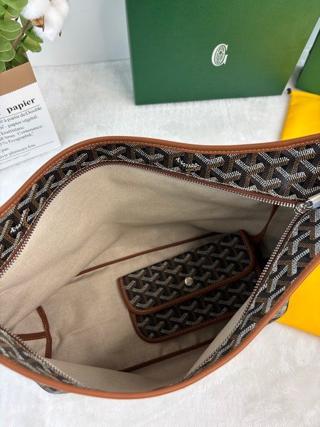Goyard Bags 180 Goya Bohème Hobo bag epitome of lightness, flexibility, and security, thanks zipper closure.Due to its wide handle, it is very comfortable as shoulder bag.It also features the iconic detachable pouch that can be closed with a snap button. Style number: 98666 Color: Black/Brown Dimensions: 43cm 14cm x 27cm