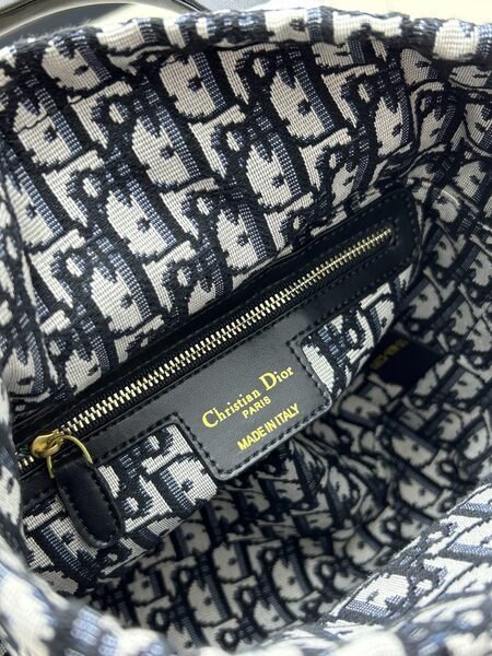 The interior includes a blue Oblique printed pouch with a zipper pocket and drawstring closure.