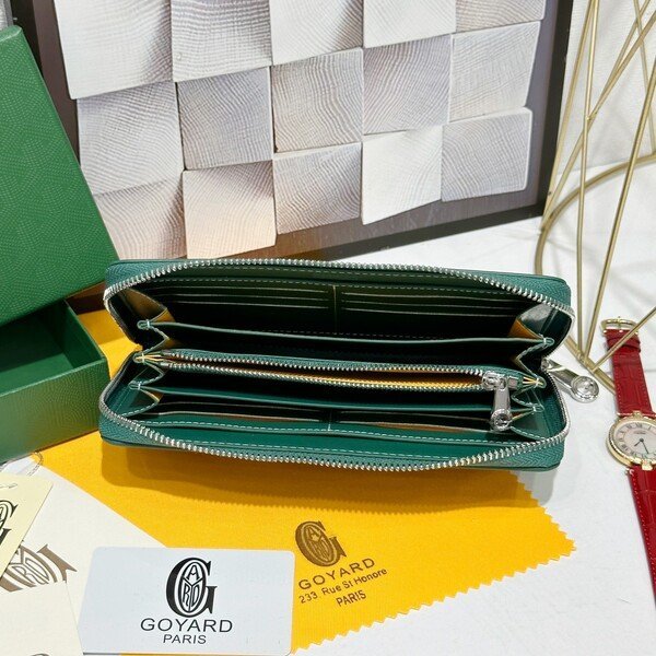 Goyard Bags 90 Goya Matignon Large Wallet is designed as long style with full closure security.It contains 12 card slots, a central zipper pocket, two large storage compartments for cards, banknotes, coins, and other daily documents. Style number: 98188 Color: Green Size: 20cm 2.3cm x 11cm