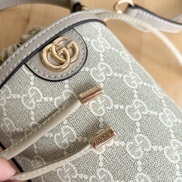 The iconic double G accessory infuses this mini bucket bag with extraordinary charm.