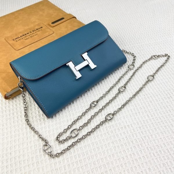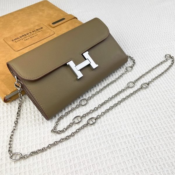 Hermes Bags Hermes Constance Chain Crossbody Bag p155 Model: 539-1 Palm Print Silver Buckle Size: 22*11cm Made of Empson cowhide, it feels soft comfortable.Exquisite elegant, with smooth straight edges. It has two bill inside, one zipper pocket, and 12 card slots for super large capacity, which can hold phone.Can be worn crossbody an underarm bag, chain length 120cm, detachable as a wallet or clutch, multi-use bag