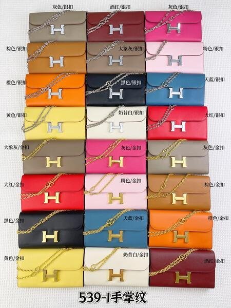 Hermes Bags Hermes Constance Chain Crossbody Bag p155 Model: 539-1 Palm Print Silver Buckle Size: 22*11cm Made of Empson cowhide, it feels soft comfortable.Exquisite elegant, with smooth straight edges. It has two bill inside, one zipper pocket, and 12 card slots for super large capacity, which can hold phone.Can be worn crossbody an underarm bag, chain length 120cm, detachable as a wallet or clutch, multi-use bag