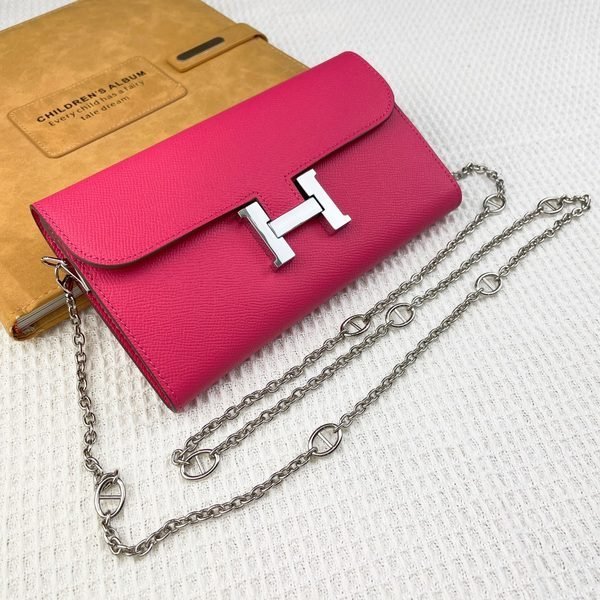 Hermes Bags Hermes Constance Chain Crossbody Bag p155 Model: 539-1 Palm Print Silver Buckle Size: 22*11cm Made of Empson cowhide, it feels soft comfortable. Exquisite elegant, with smooth straight edges. It has two bill inside, one zipper pocket, and 12 card slots for super large capacity, which can hold phone. Can be worn crossbody an underarm bag, chain length 120cm, detachable as a wallet or clutch, multi-use bag