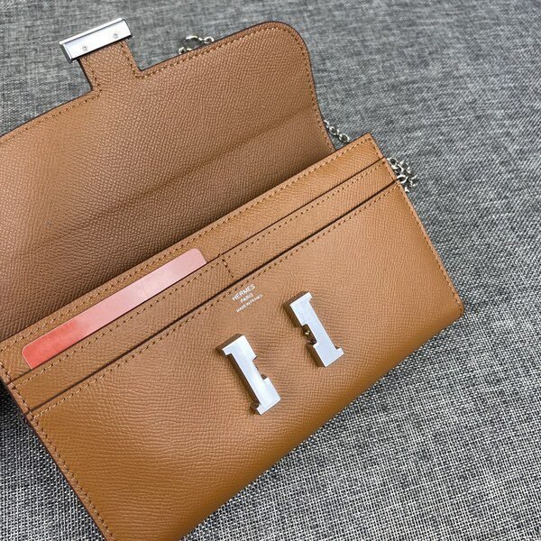 Hermes Bags Hermes Constance Chain Crossbody Bag p155 Model: 539-1 Palm Print Silver Buckle Size: 22*11cm Made of Empson cowhide, it feels soft comfortable.Exquisite elegant, with smooth straight edges. It has two bill inside, one zipper pocket, and 12 card slots for super large capacity, which can hold phone.Can be worn crossbody an underarm bag, chain length 120cm, detachable as a wallet or clutch, multi-use bag