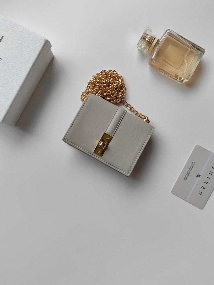 ????80 Celine Latest Chain Card Holder, TRIOMPHE Flap Chain Card Holder, Crossbody Wearable, Classic Pattern with Plain Microfiber Interior, Rotating Lock Closure, 1 Thickened Main Compartment, 2 Interior Card Slots