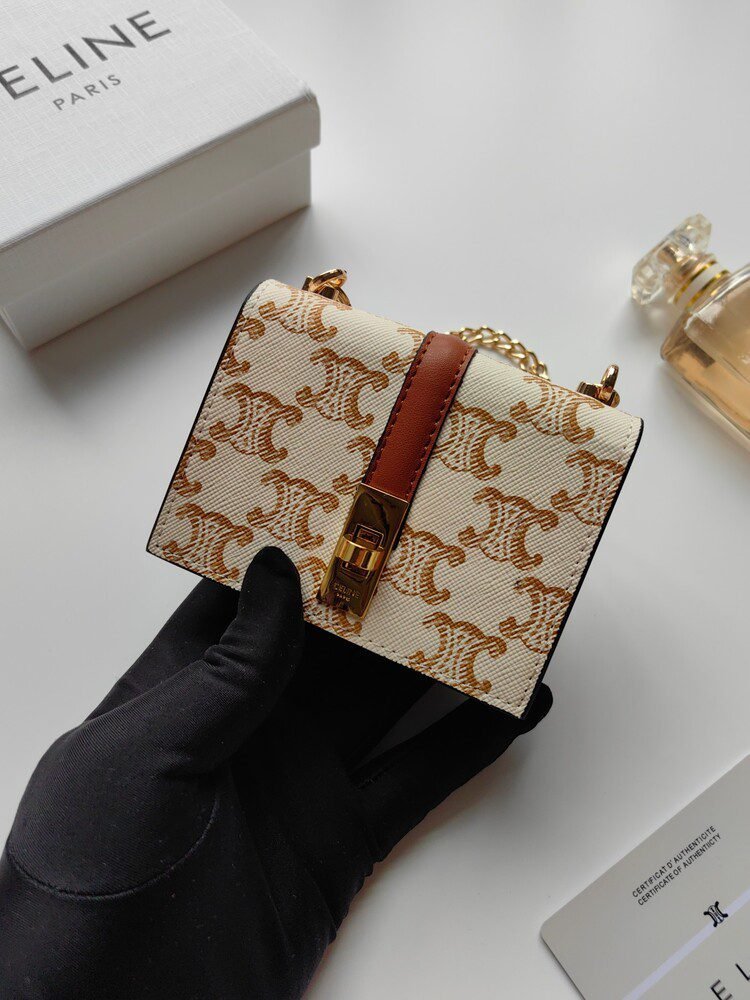 ???? 80 Celine Latest Chain Card Holder, TRIOMPHE Flap Chain Card Holder, Crossbody Wearable, Classic Pattern with Plain Microfiber Interior, Rotating Lock Closure, 1 Thickened Main Compartment, 2 Interior Card Slots